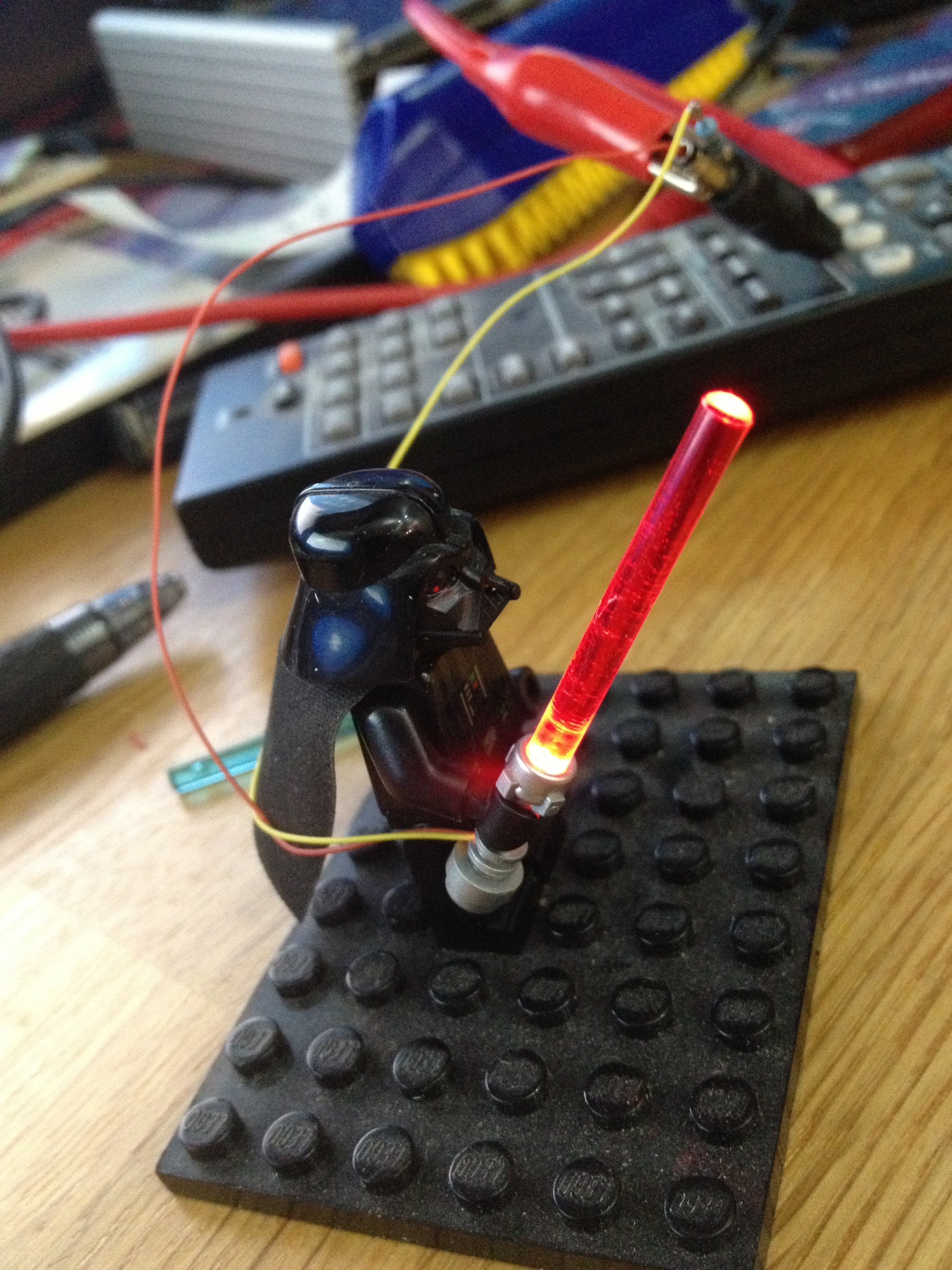 After doing that, I had a thought: Could I light up a light sabre in the hands of a minifig?