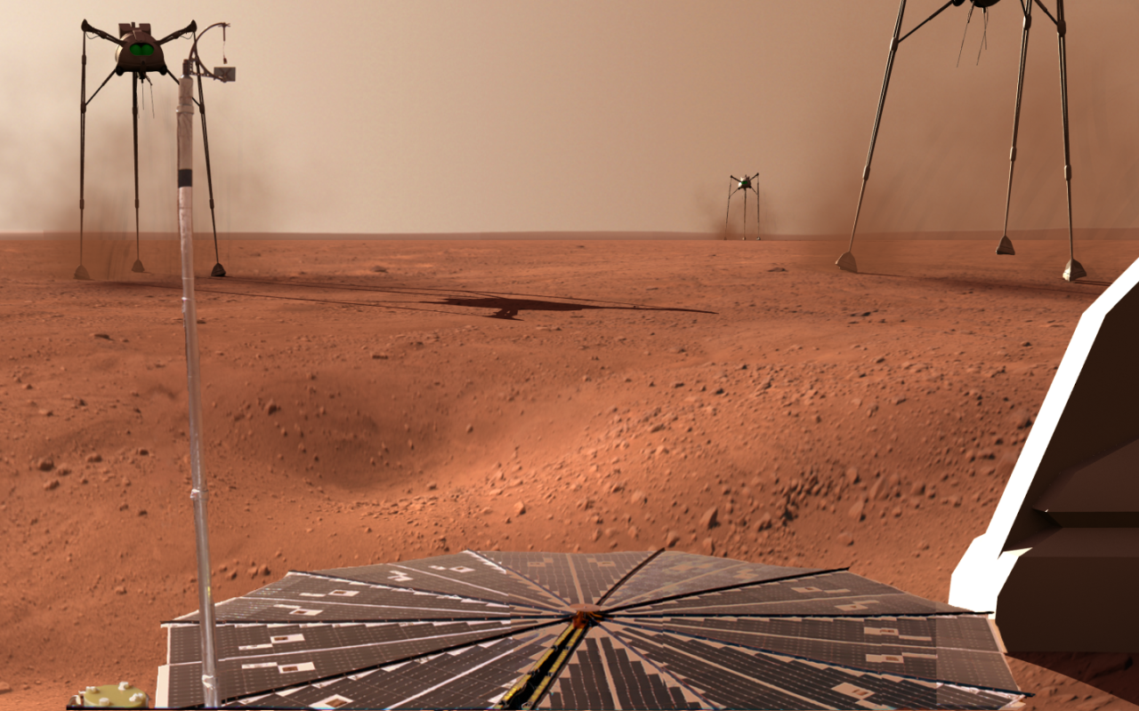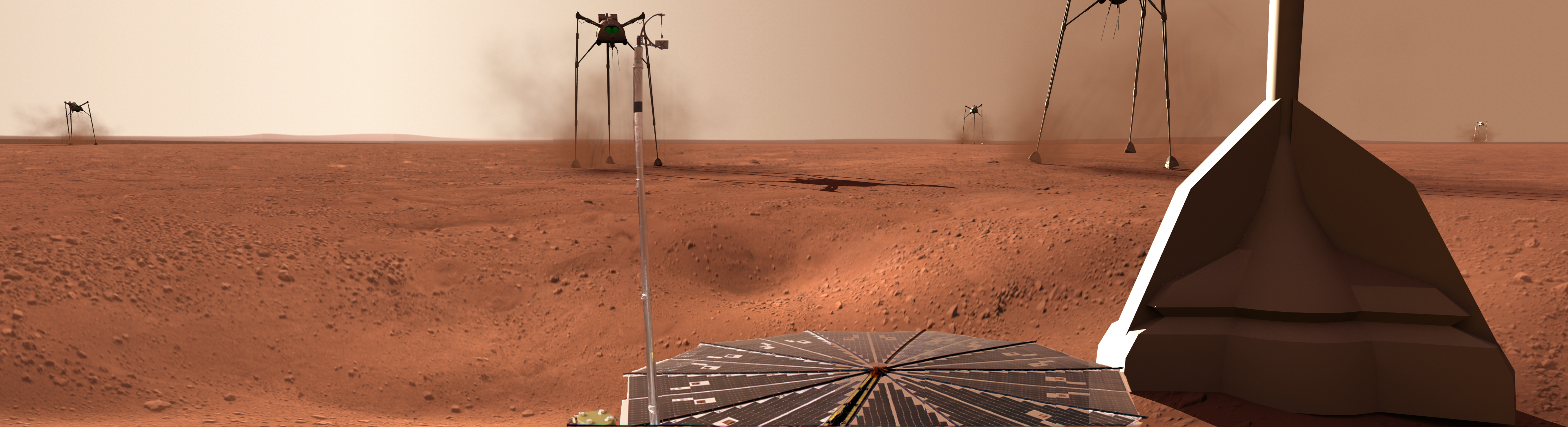 When NASA released the pictures taken from the Phoenix Lander, I couldn't resist superimposing some Martians on it.